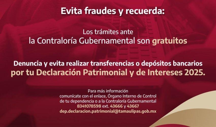 Ciudad Victoria, Tamaulipas.- La Contraloría Gubernamental de Tamaulipas, informa que desde el día primero de mayo ha iniciado la actividad en el sistema DECLARANET (https://declaranet.tamaulipas.gob.mx/).
