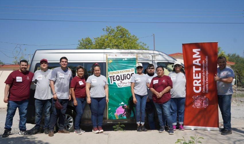 Ciudad Victoria, Tamaulipas.– En cumplimiento a la convocatoria nacional emitida por la Dirección General de Educación Superior para el Magisterio (DGESUM), el Centro Regional de Formación Docente e Investigación Educativa de Tamaulipas (CRETAM) llevó a cabo una jornada de trabajo comunitario en la plaza del ejido San Juan y El Ranchito, del municipio de Victoria.