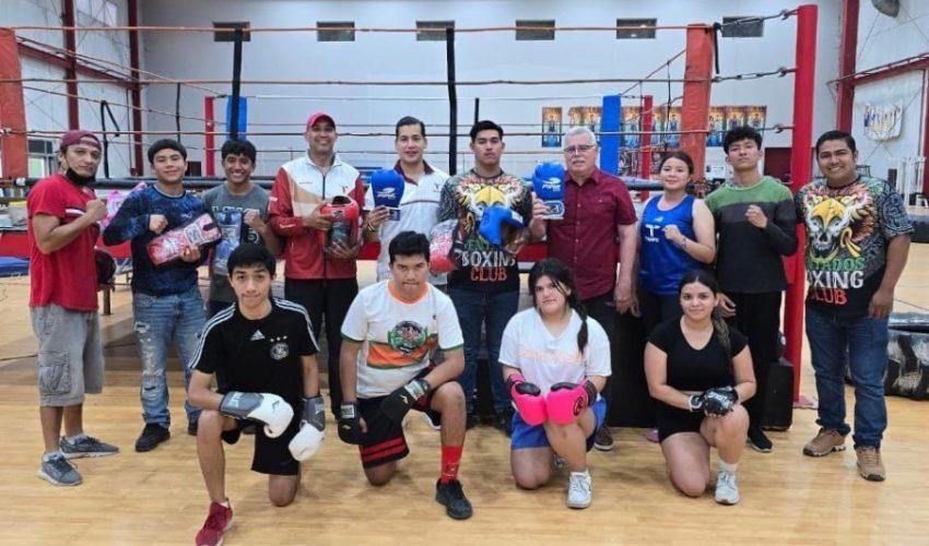 Durante su recorrido, Virués Lozano entregó material deportivo al equipo de boxeo, reconociendo el esfuerzo de quienes han logrado su clasificación a la Olimpiada Nacional.